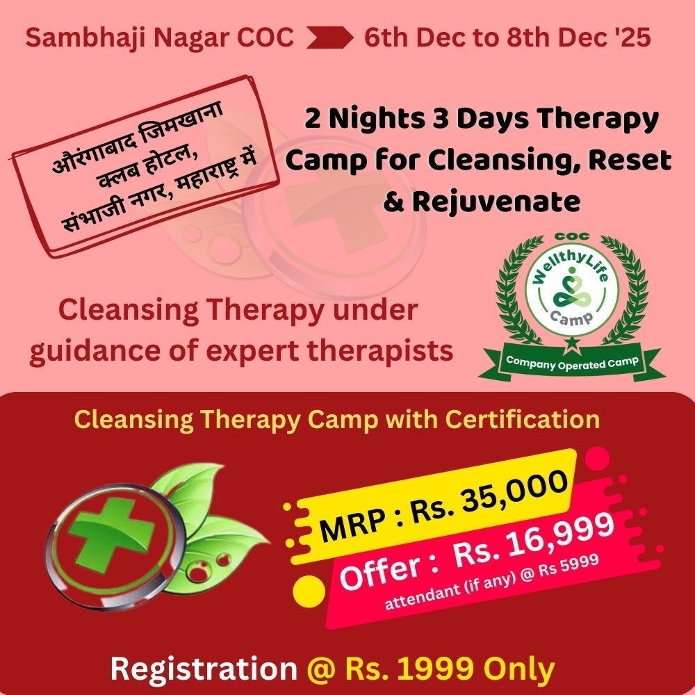 The MRP is 35,000 but you get a special price of Rs 16,999. For registration, you need to book the Therapy Kit at only Rs 1999 and balance to be paid to the camp organiser on or before 5th Dec '25.