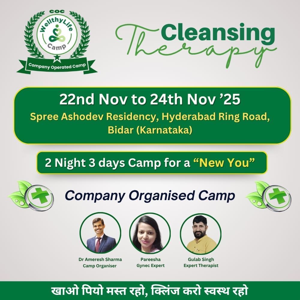 WellthyLife Camp is a well designed 2 night 3 days residential camp where you get comprehensive cleansing therapy and more.