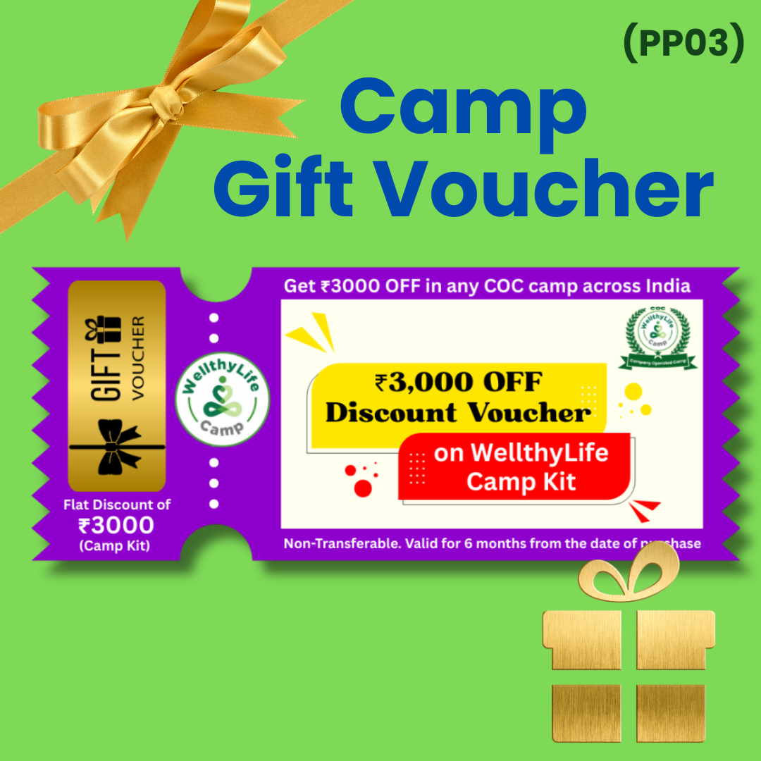 This PP03 is prime package gift voucher of Wellthylife camp. This is actally camp kit voucher given in advance. You have complete flexibility to use this within 6 months at any COC in India.