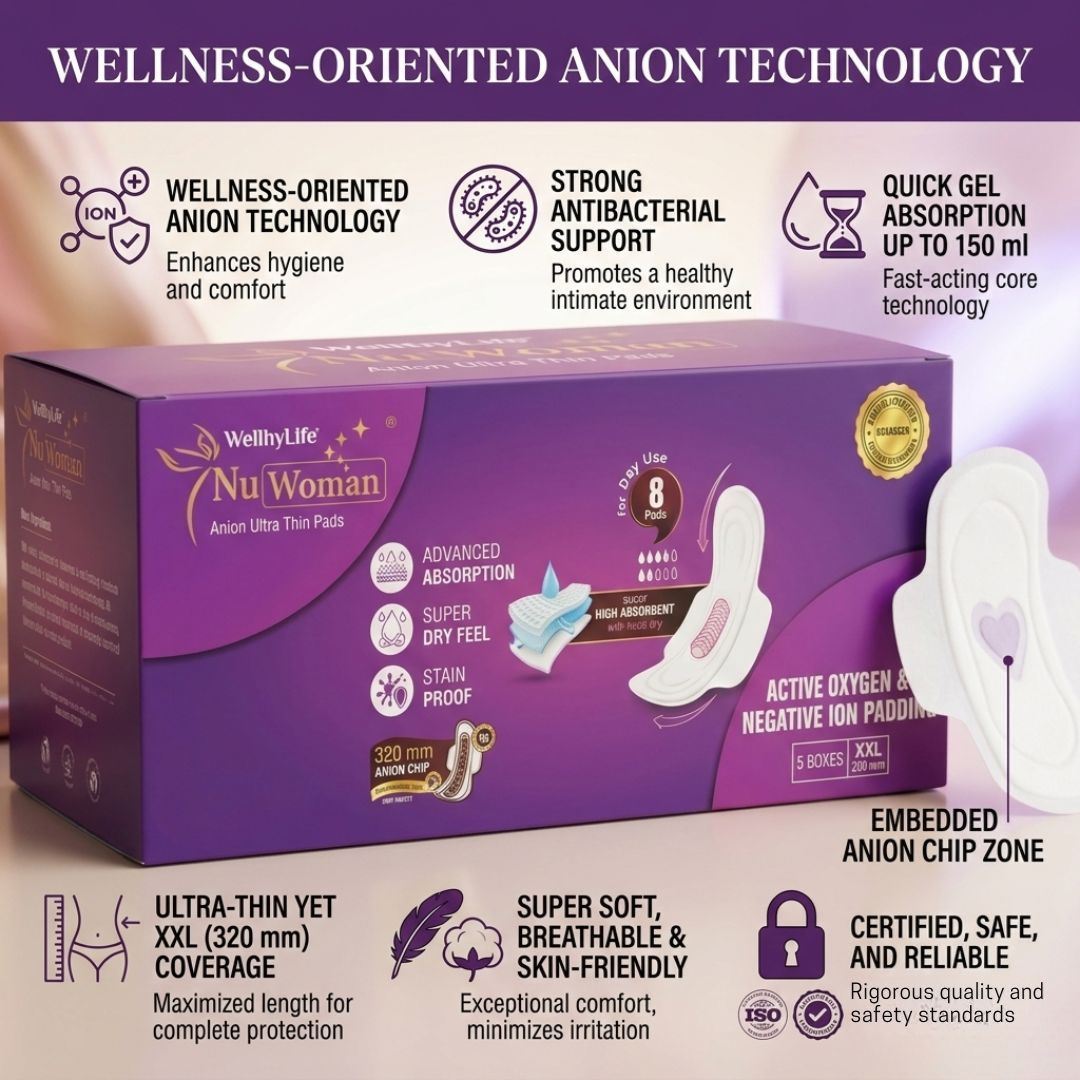 NuWoman pads are powered with a special Anion Chip, designed to support intimate wellness.